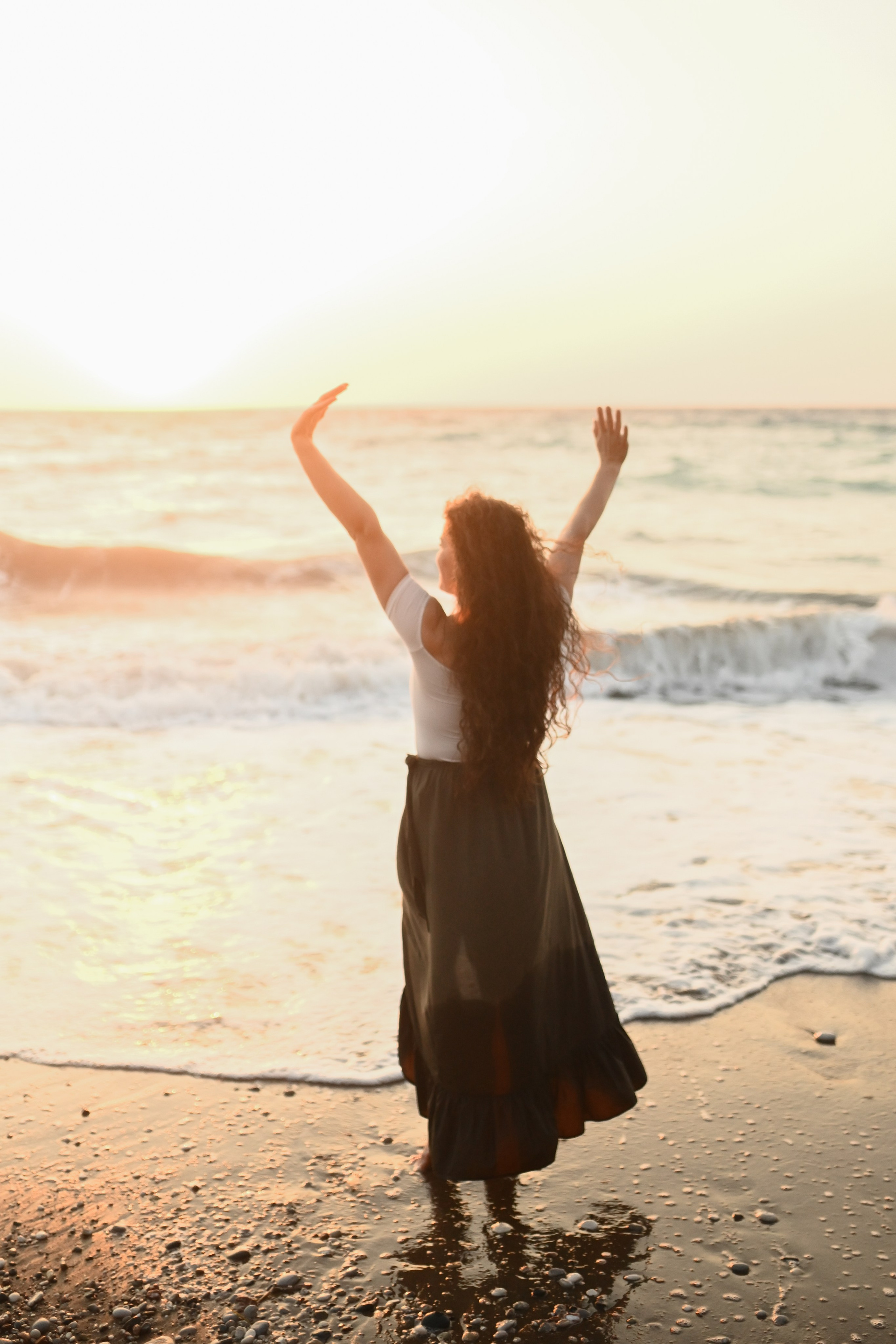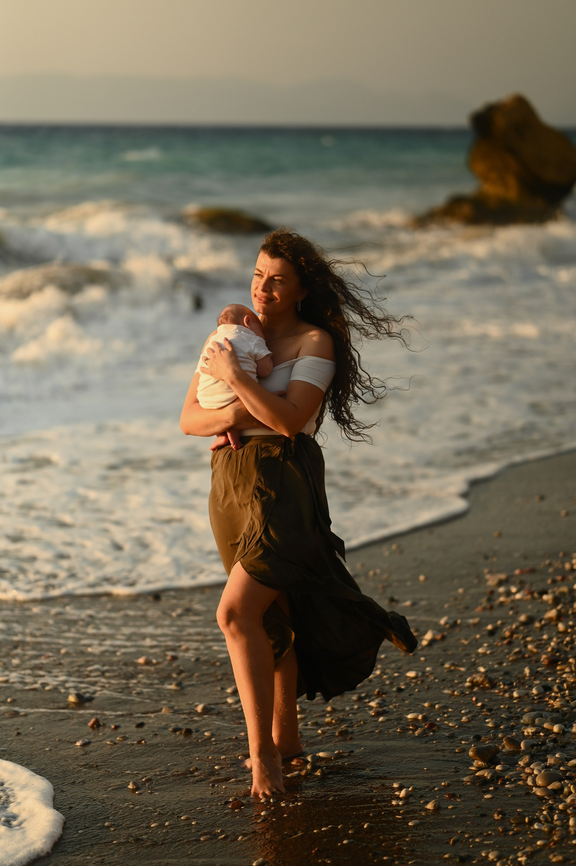 Standing between sea and stone, wrapped in flowing fabric and golden sunlight, she felt like a modern-day Aphrodite —...