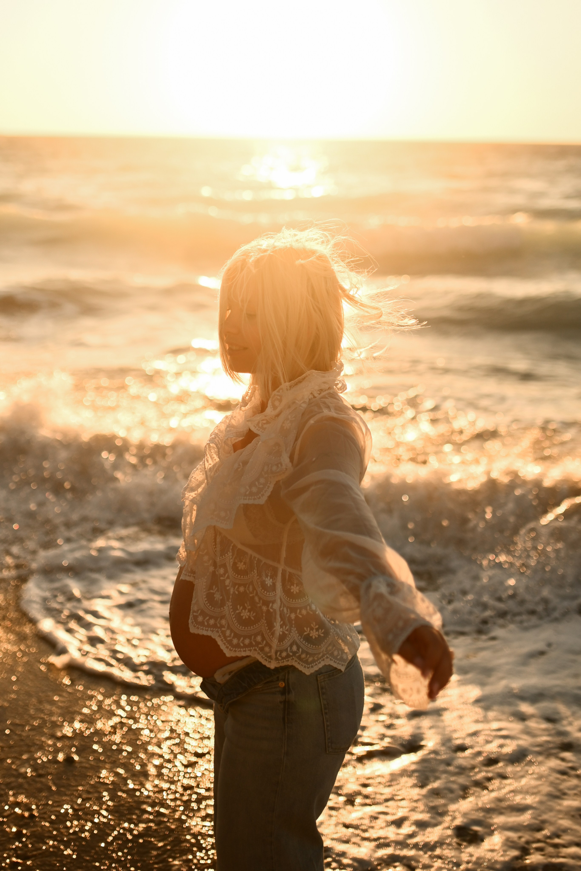 Standing between sea and stone, wrapped in flowing fabric and golden sunlight, she felt like a modern-day Aphrodite —...